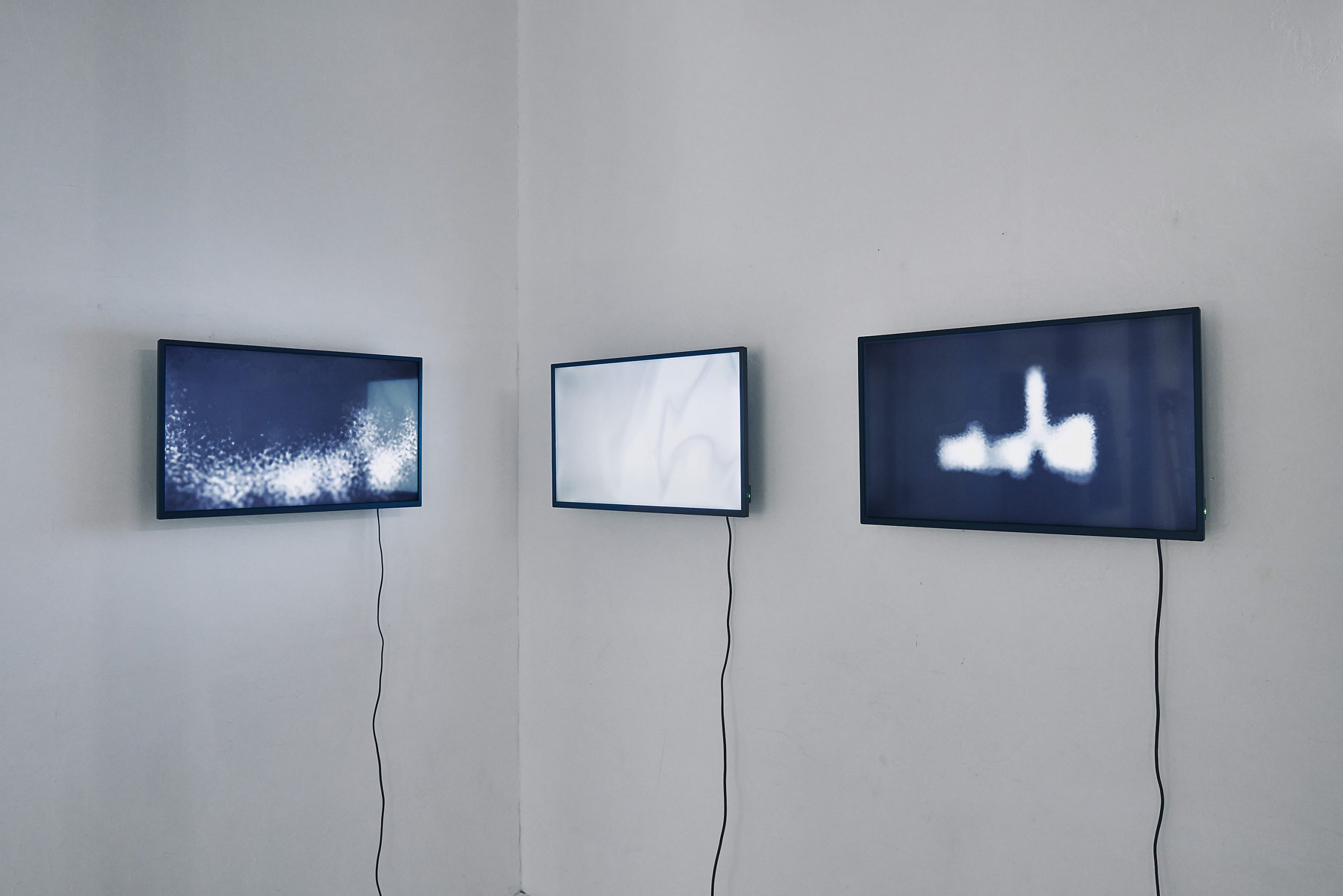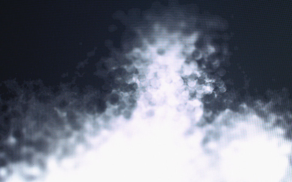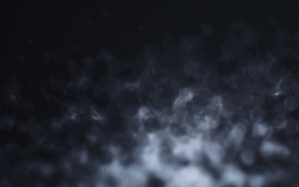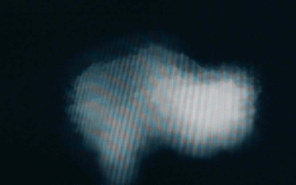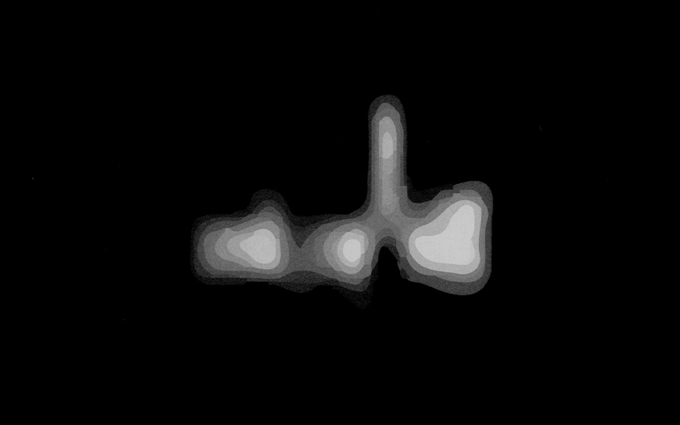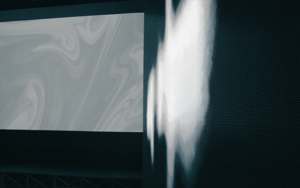 ⿊い画⾯に浮かび上がる不可思議な紋様は、特定のプログラムを通してすくいとられた、可視化された⾳楽の部分である。