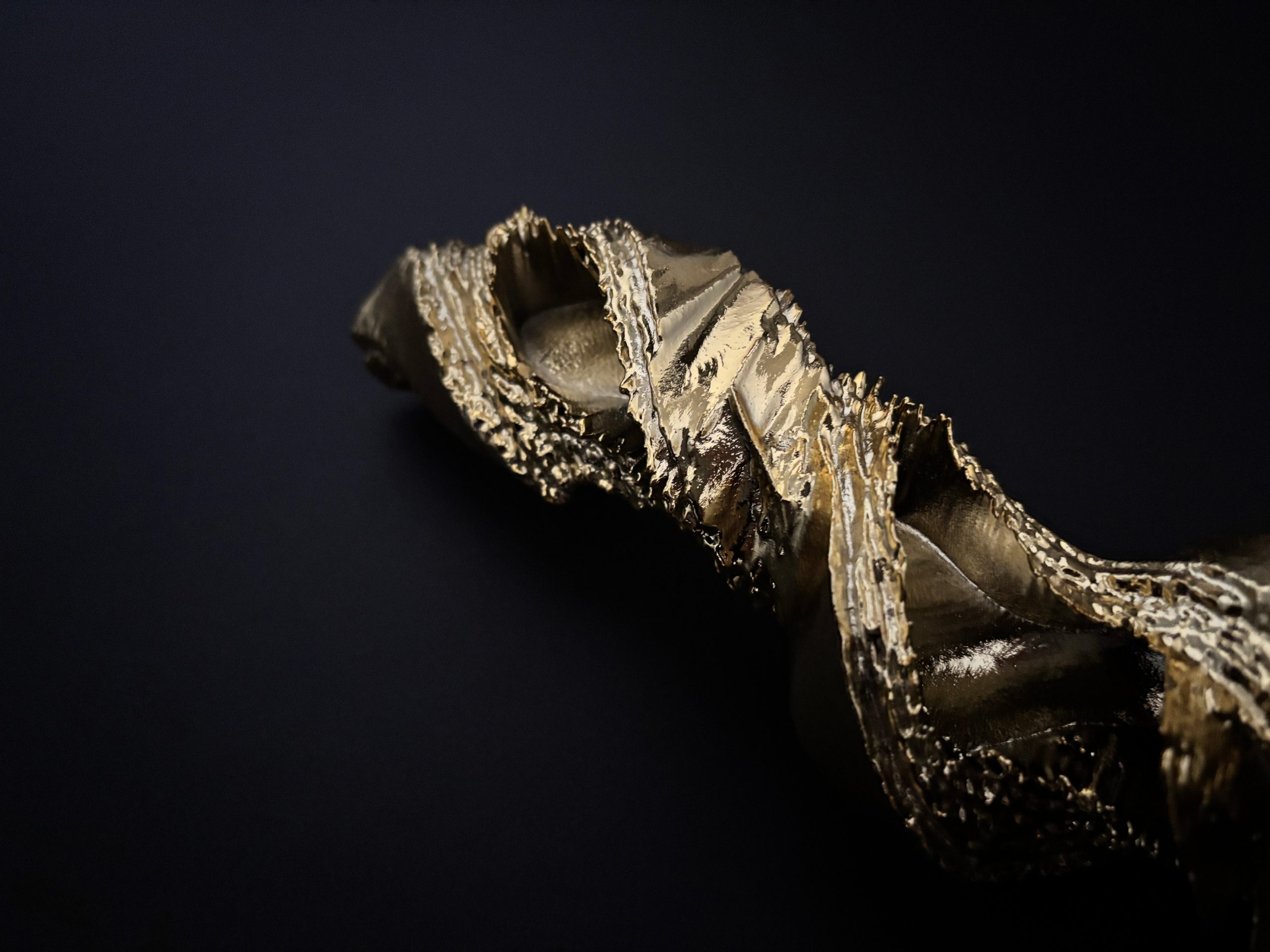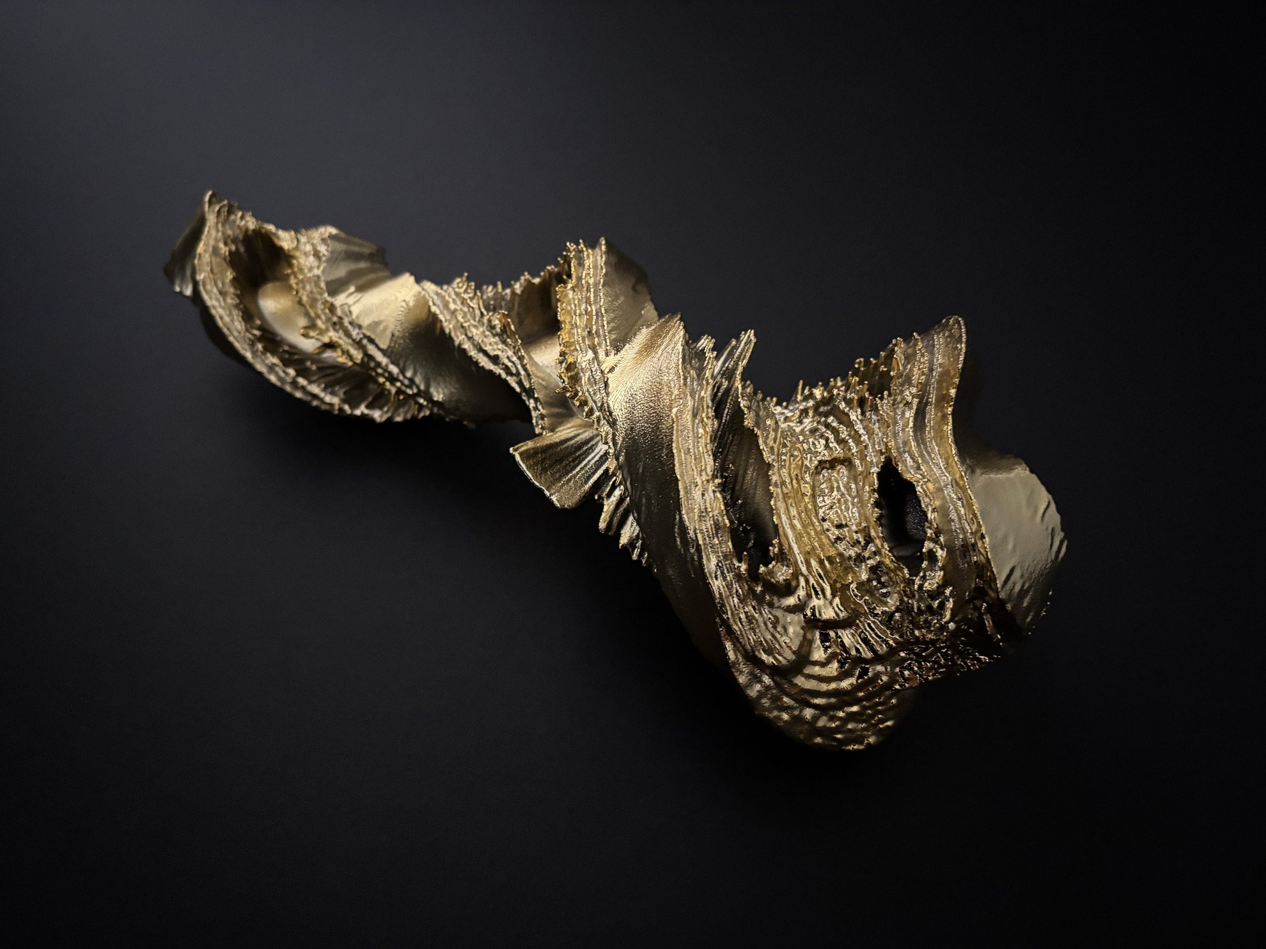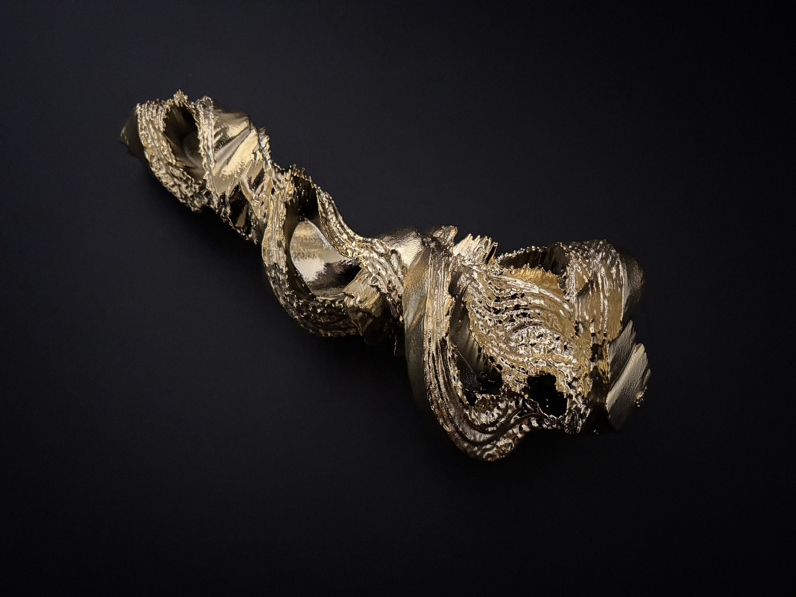 本作では、ソノグラフから抽出した形を3D-CADソフトで回転させながら上昇させている。地面から現れた地霊がくるくると回転しながら空へ昇っていく情景を想起させるものである。