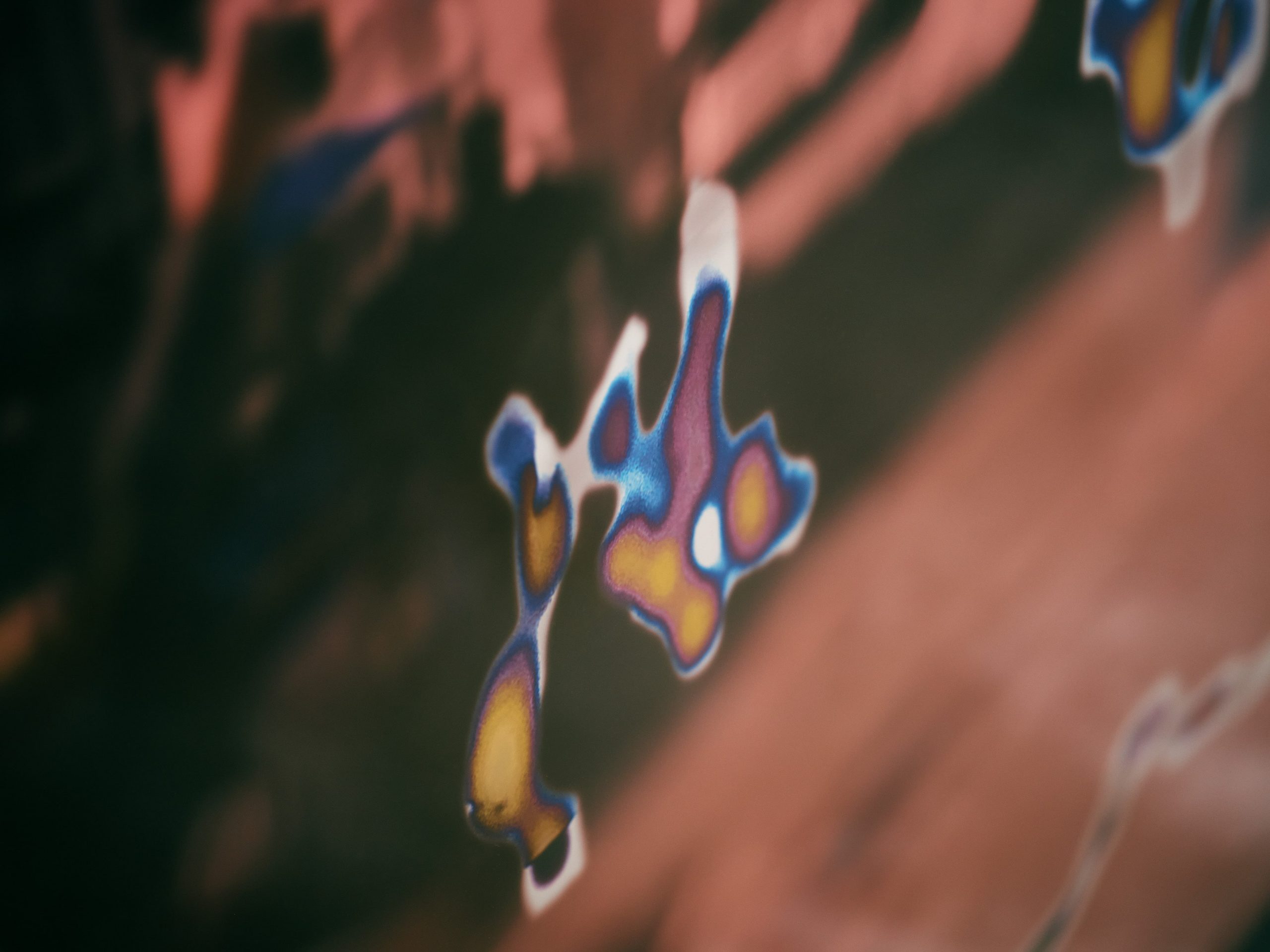 動画のキャプチャ画像の上に重ねられているのは、これらの動画の音声のソノグラフから抽出した様々な図形である。ソノグラフとは音響を周波数帯ごとに分解し、それぞれの周波数帯における音量の強弱を濃淡で表現したグラフである。本来ソノグラフは人の声や動物の鳴き声、楽器の音などをグラフ化するための装置であるが、この作品において私が抽出しているのは、声と声の間、つまり声と雑音の境界領域に存在する何かのグラフである。