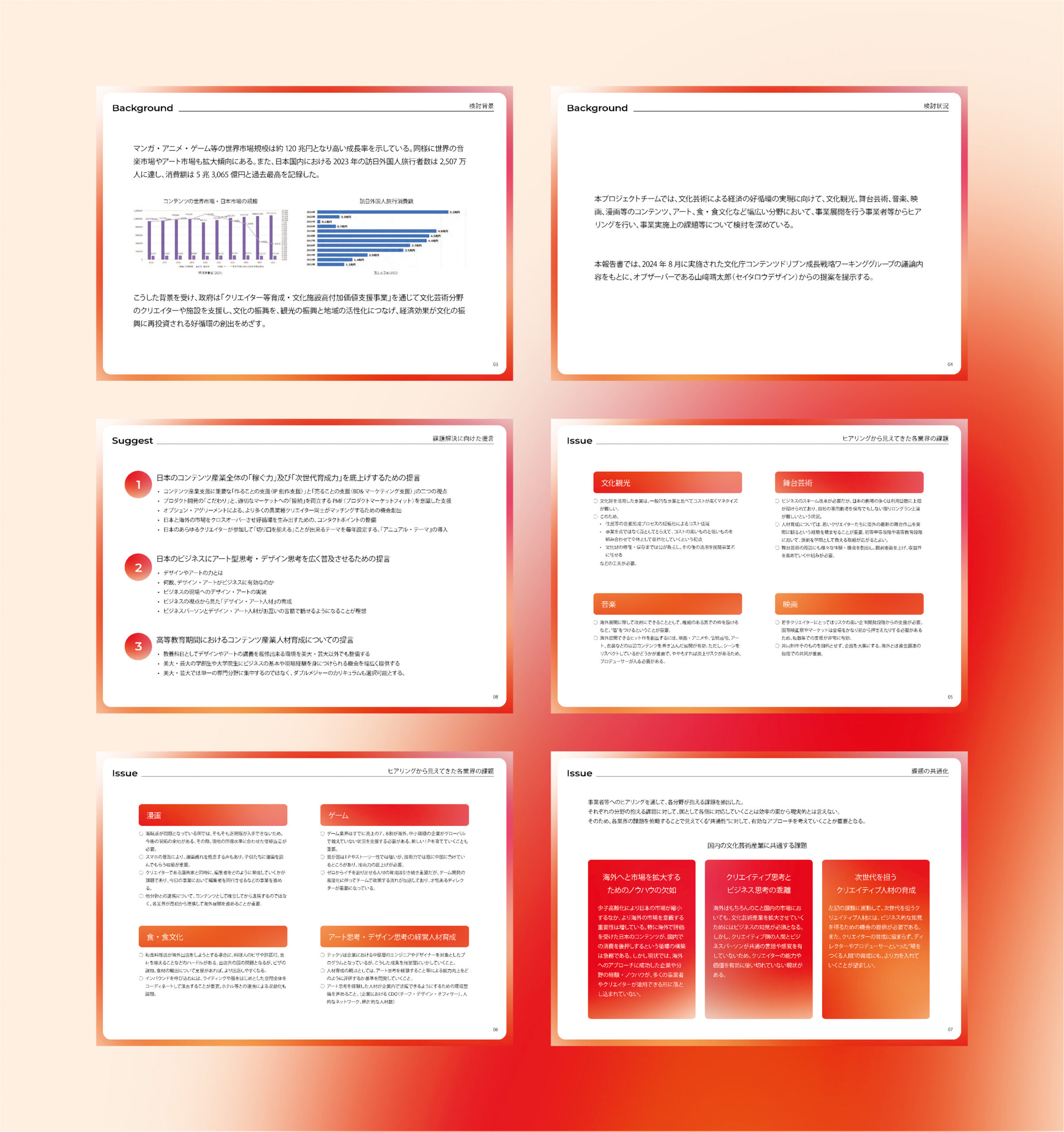 本報告書では、2024年8月に実施された文化庁コンテンツドリブン成長戦略ワーキンググループの議論内容をもとに、オブザーバーである山崎からの提案を提示しました。