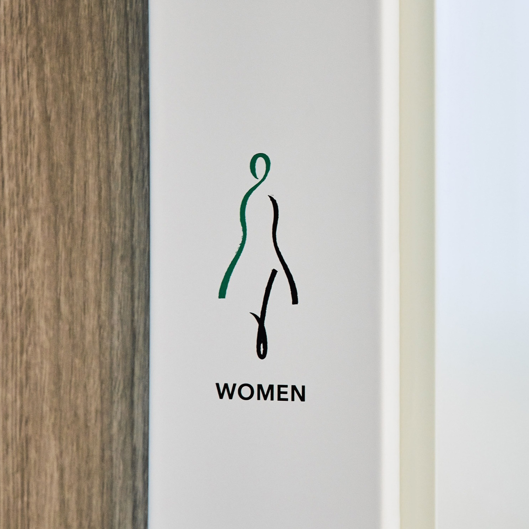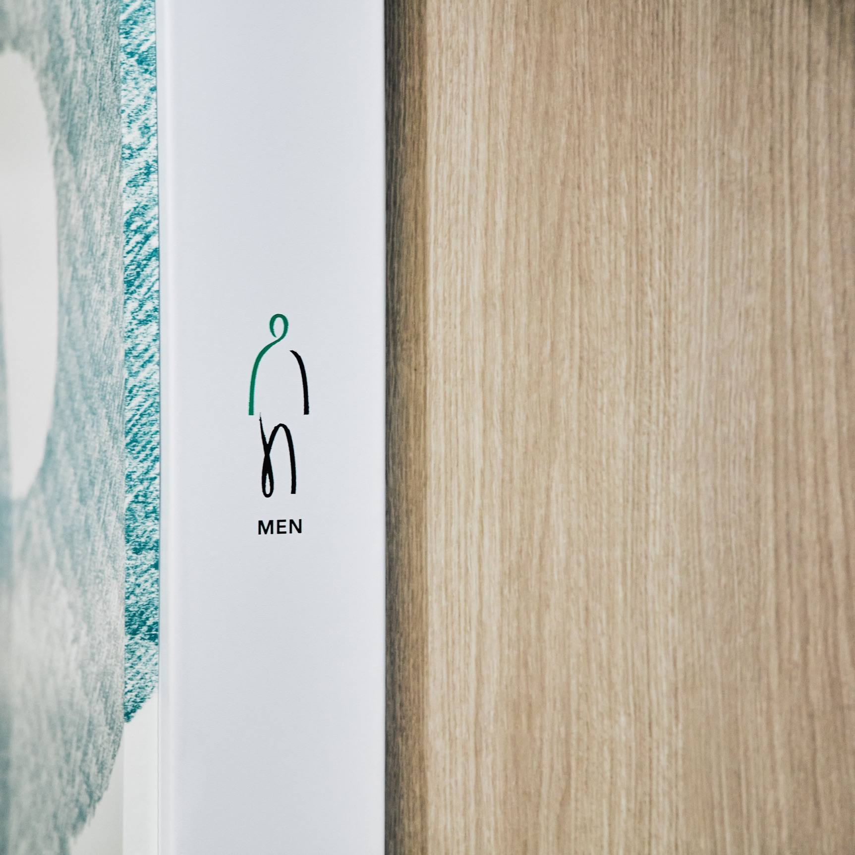 共用部のトイレ・給湯室のサイン設計は、視認性を重視するとともに、ロゴデザインのアイデンティティである緩急のついた筆勢を生かすことで、既存のシルエットにとらわれない、ブランド独自のコミュニケーションを誘発させるピクトグラムを設計しました。