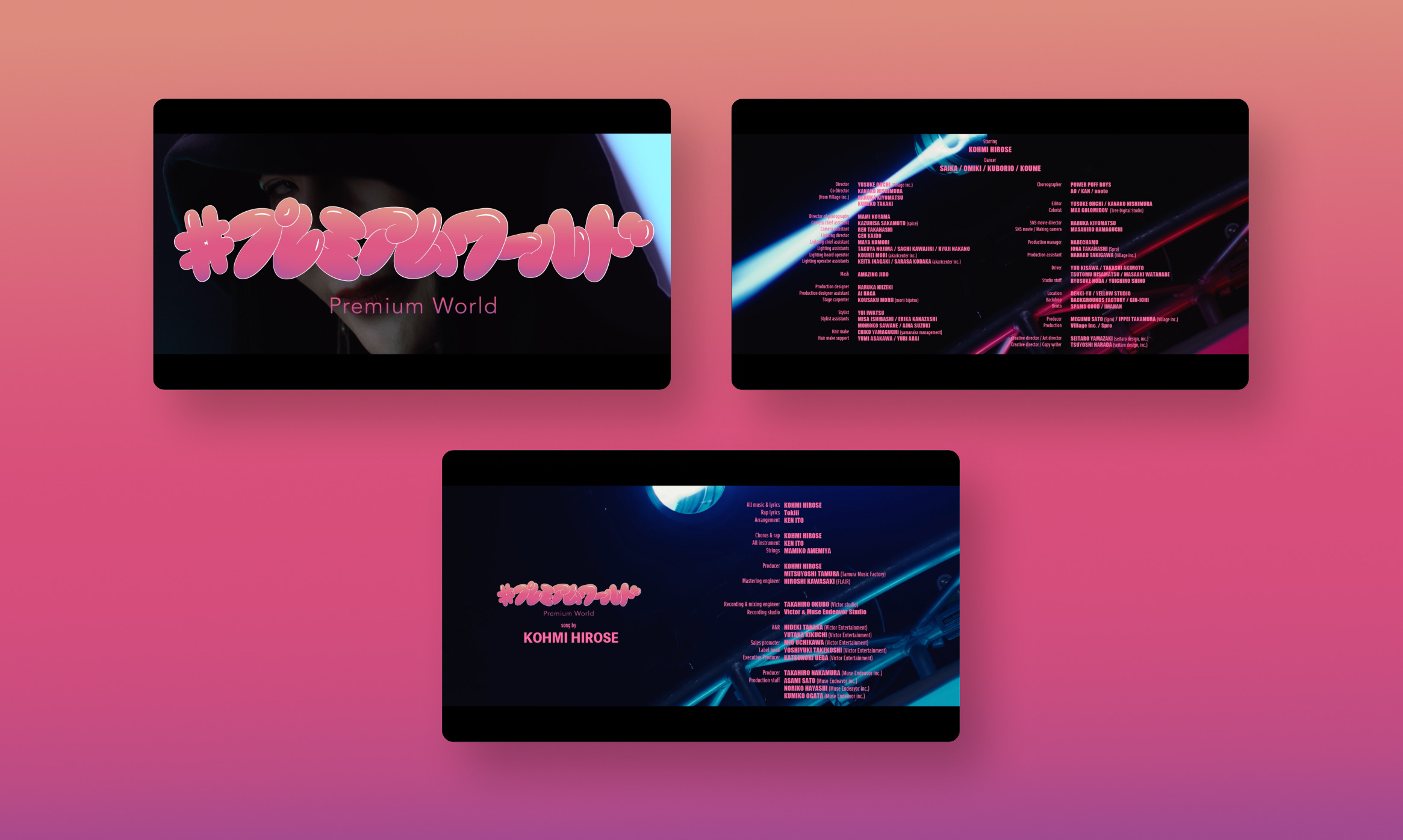 冬の五輪ソングにもなった、「君にセレナーデ」では、みんなのセレナーデプロジェクトを立ち上げ、一般の方々から集めたビデオをもとにPVを制作。「PREMIUM WORLD」では、広瀬香美さんの多面性と挑戦心を全力に表現。本人のお面つけたインパクトのある露出行動で世間の話題をさらいました。
