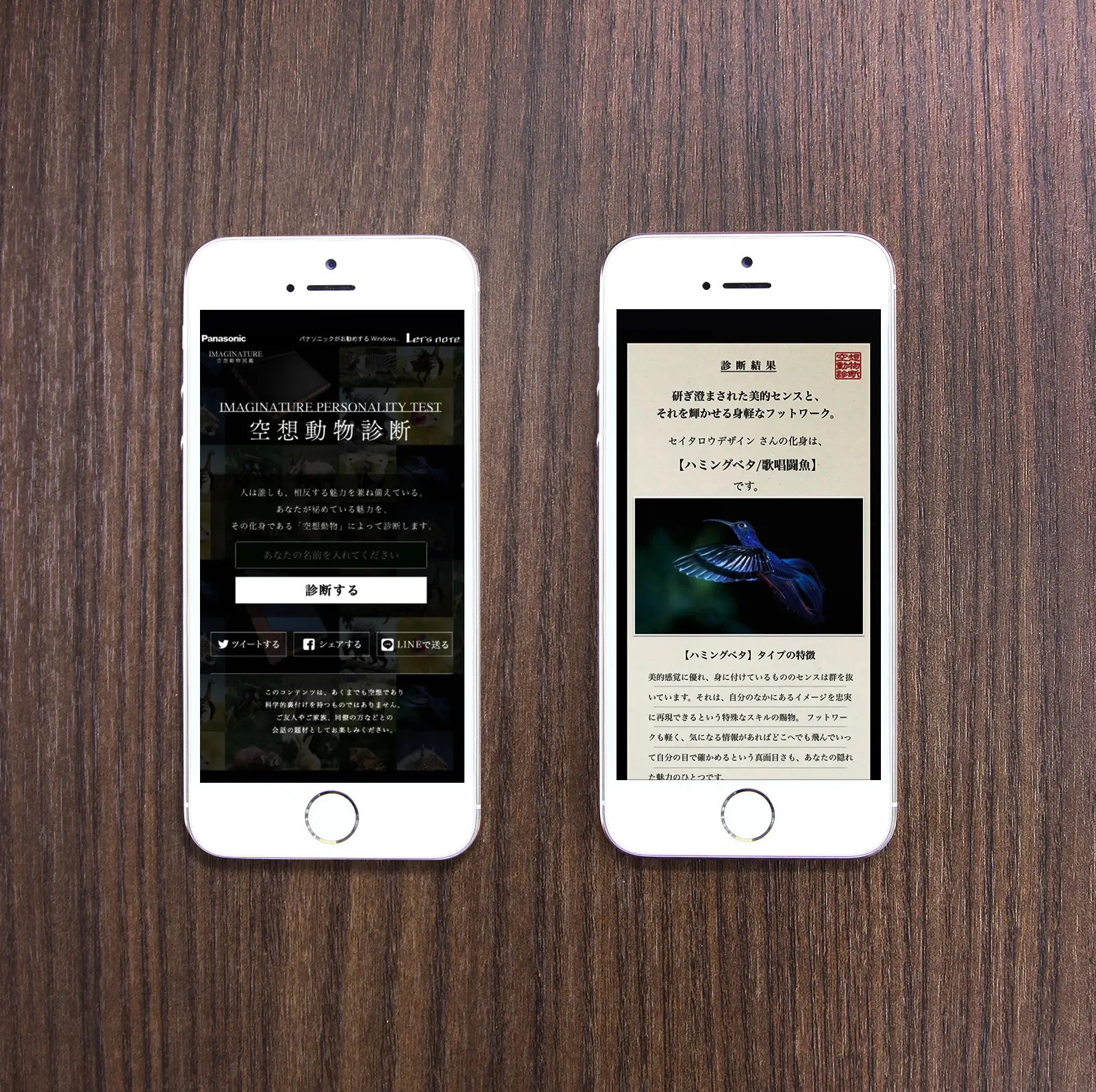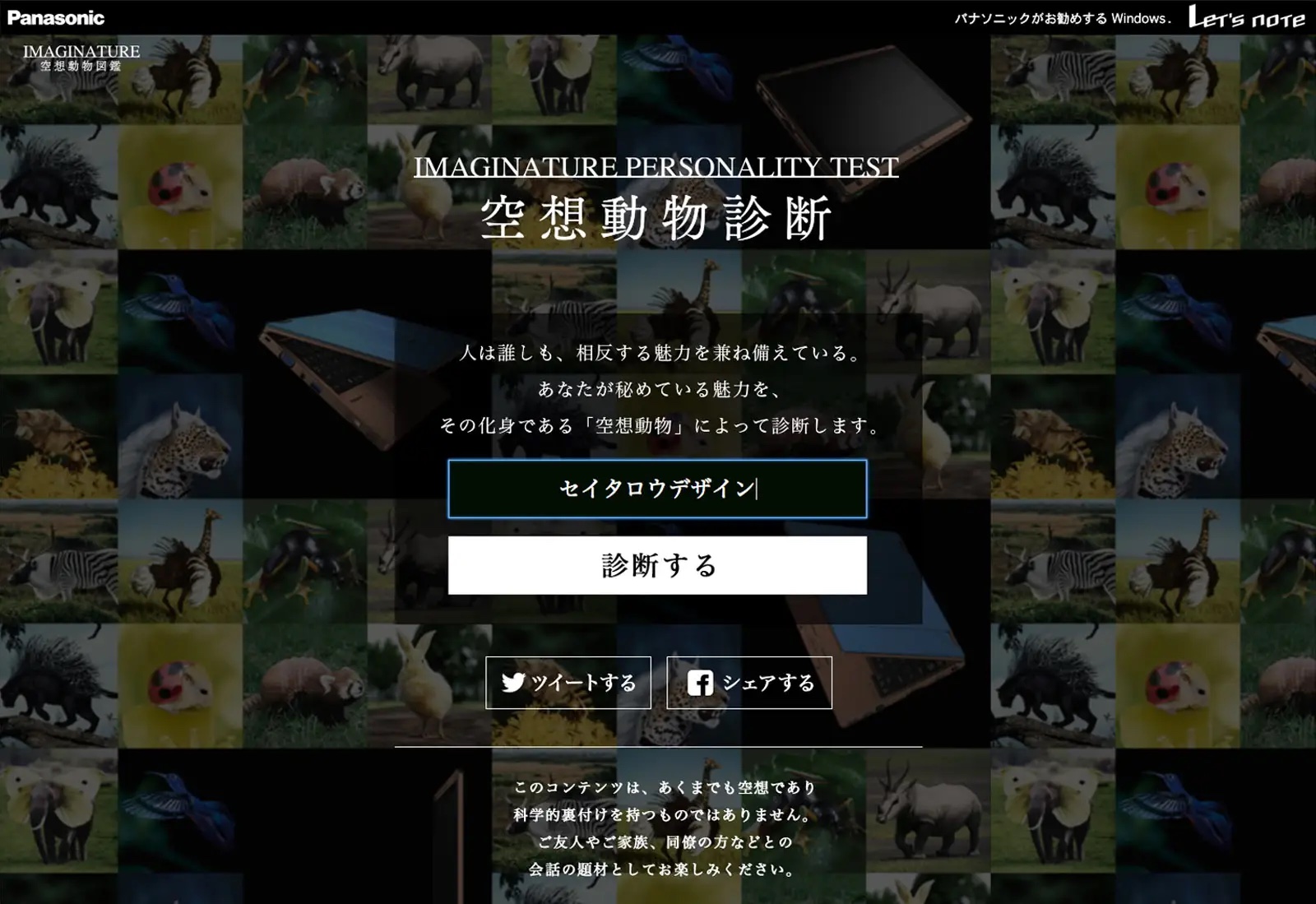 同時に、SNSでの拡散を目的に、ユーザーが名前を入力すると、「その人の化身」として対応する空想動物を提示する『空想動物診断』を実装し、若年層を中心に、公開後わずか48時間で10万tweetを記録し、コンテンツサイトは、公開3日で100万PVを達成し、ブランドの認知獲得に大きく貢献しました。