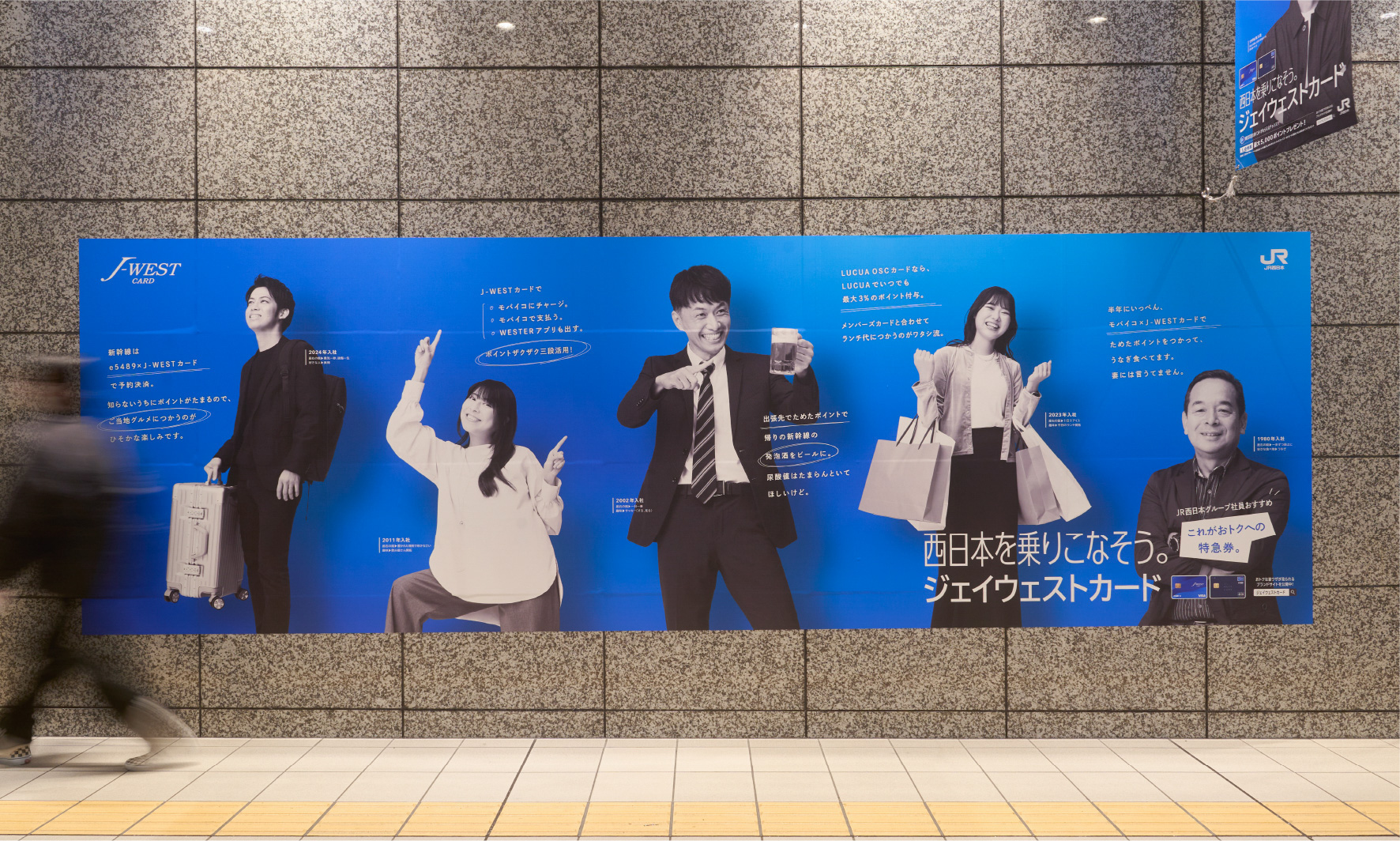 鉄道予約やICOCAとの連携に強みを持つJR西日本のクレジットカード「J-WESTカード」。そのブランド認知や加入者増を狙った総合プロモーションをセイタロウデザインが担当しました。