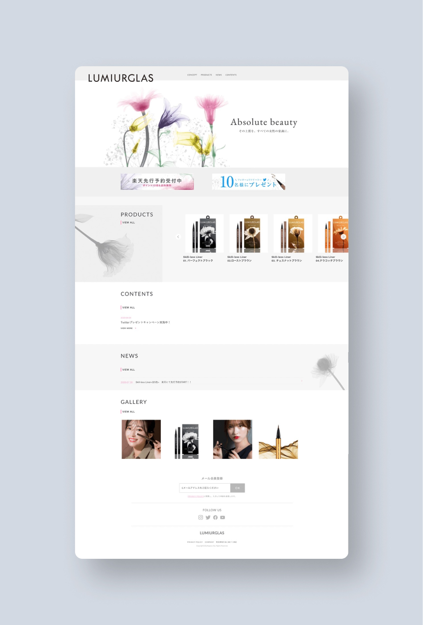 パッケージやキービジュアルには、CT撮影をした半透明の花をモチーフとして使用。「すべての女性が秘めている、それぞれに異なる美しさを引き出すアイライナーでありたい」というブランドの想いを、デザインを通して伝えています。