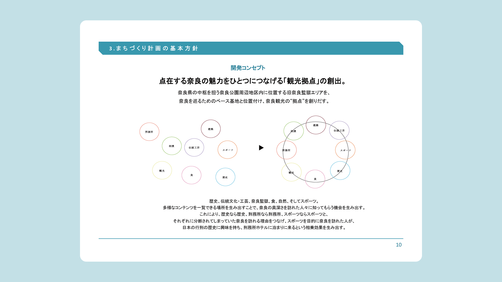 また、奈良の空家バンクと連動したスタートアップ支援プランを盛り込むなど、まずは地域を盛り上げることで、観光客にとっても魅力的なエリアへと街を成長させていくというプランを構築しました。