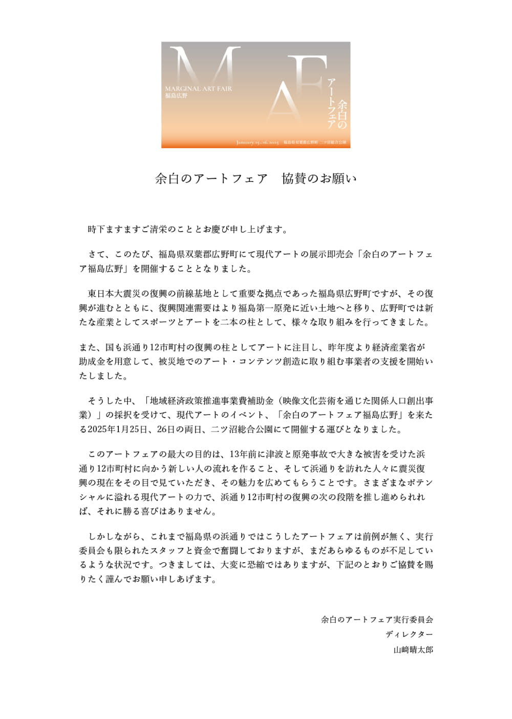 もう一つのご報告は、「余白のアートフェア福島広野」です。